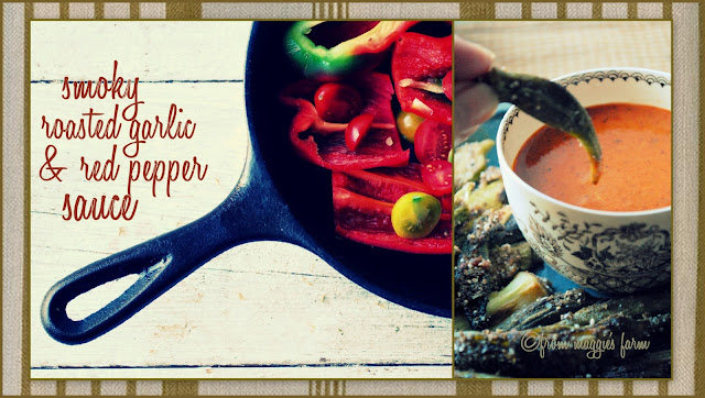 Meanwhile, roast peppers and tomatoes in a seasoned cast iron skillet in a preheated 450° oven for 15 minutes, or until tender.